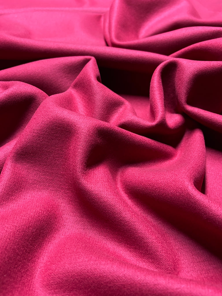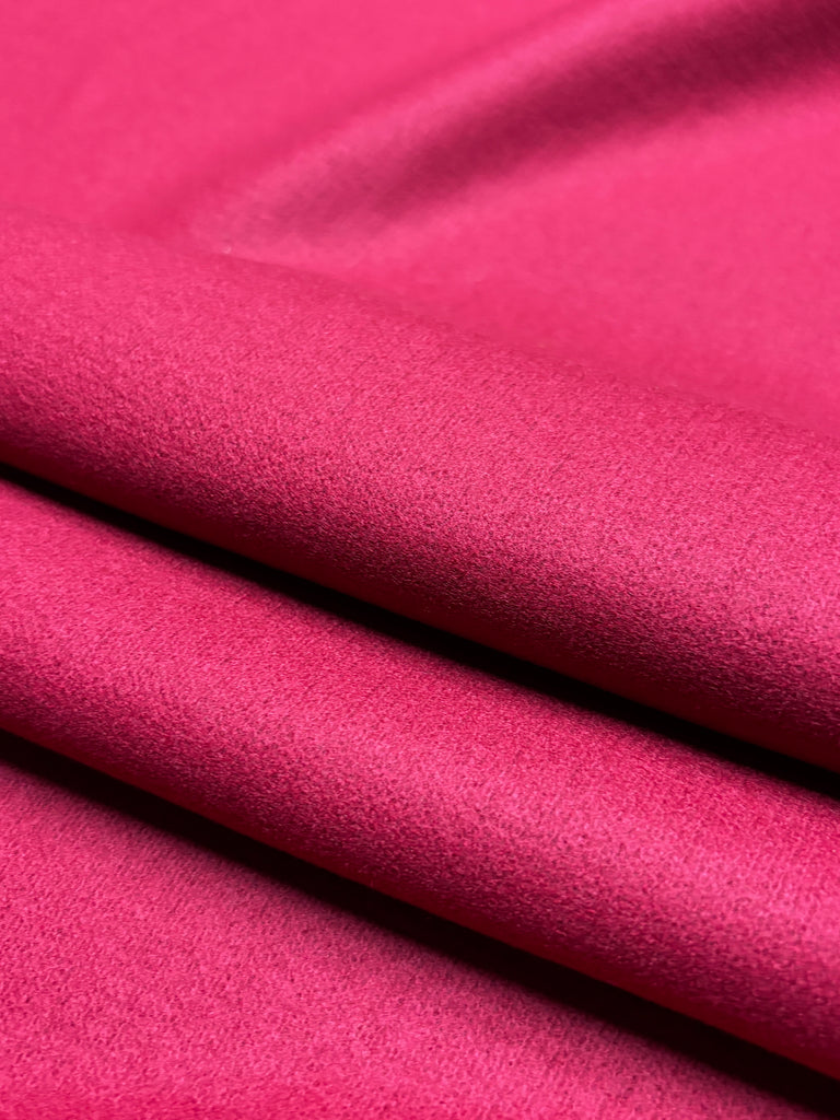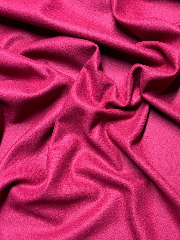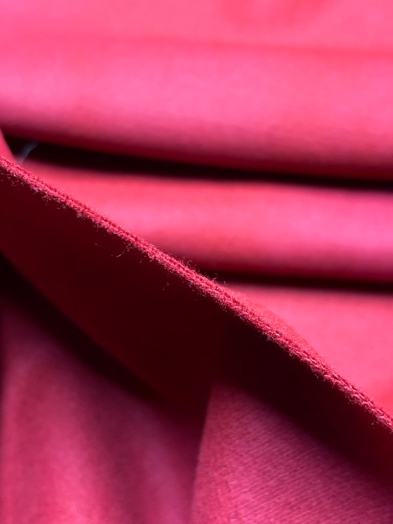 This Italian wool double knit from Mario Belucci offers practical elegance for home sewers. The reversible construction means you can wear your finished piece inside-out without missing a beat—same beautiful color on both sides. The double-knit structure eliminates fraying concerns, saving you time on finishing techniques and letting you focus on construction. Perfect for creating modern jackets with intentional raw edges and effortless style.