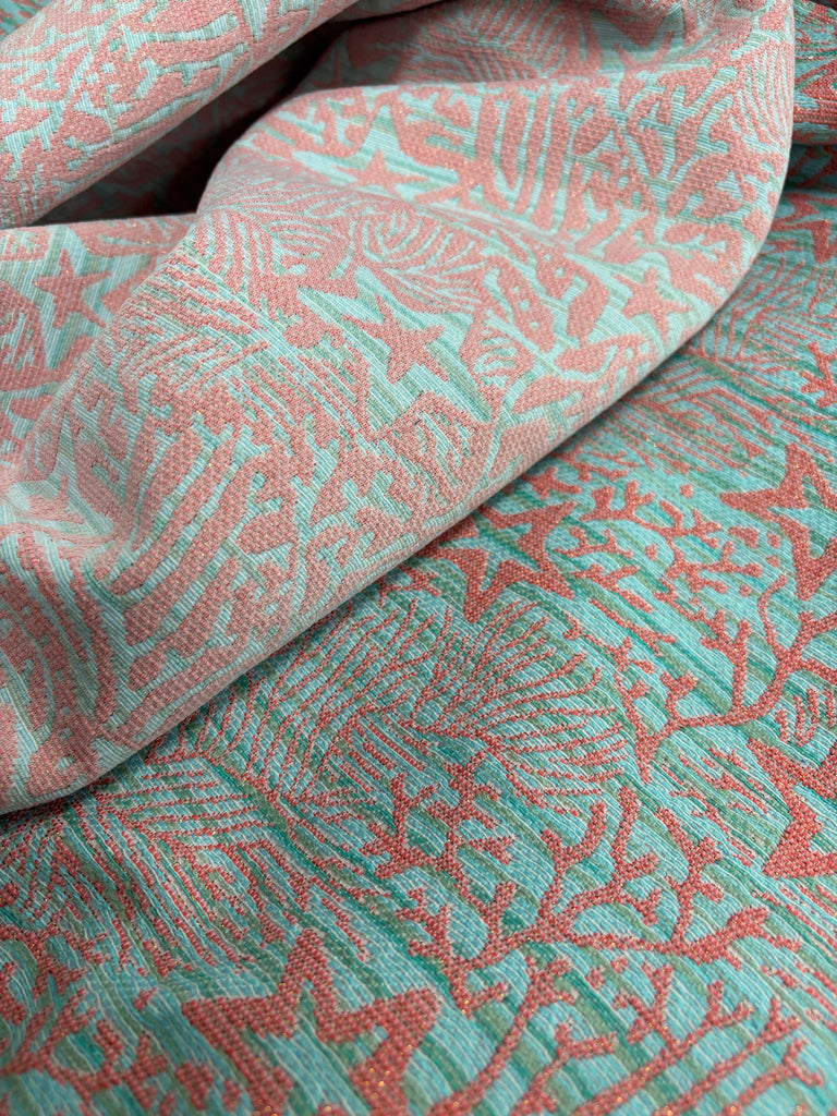REF-102W REVERSIBLE METALLIC CORAL REEF DESIGN JACQUARD. FRANCE. A CUT OF 2.5 YARDS
