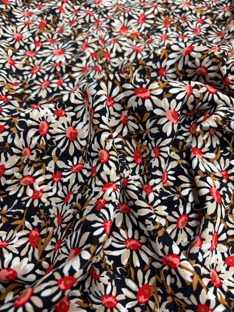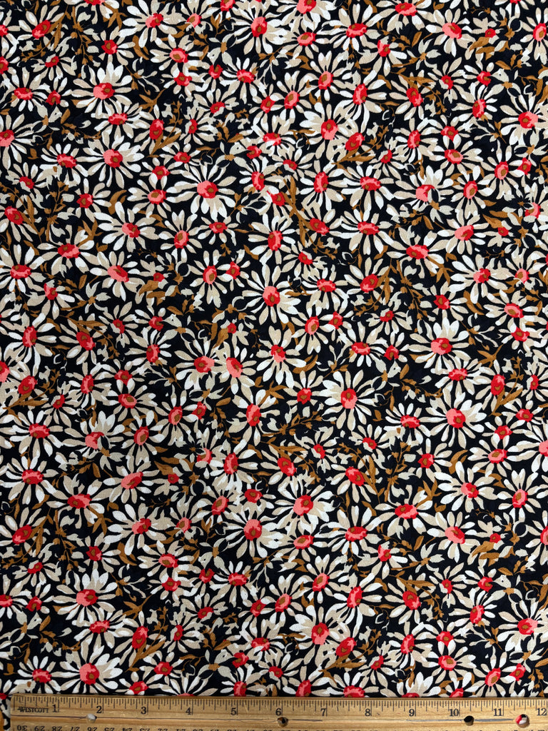 REF-111 DAISY PRINT VISCOSE CREPE. ITALY. A CUT OF 1-5/8 YARDS.