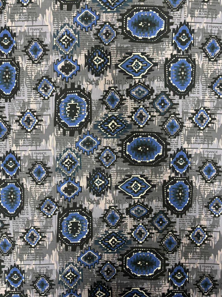 Bring designer elegance into your sewing room with this stunning John Galliano newspaper print cotton poplin from Italy. Whether you're stitching a show-stopping shirt or a polished dress shirt, this fabric's beautiful print and quality construction make your handmade pieces look professionally finished. Perfect for creating garments you'll love wearing.