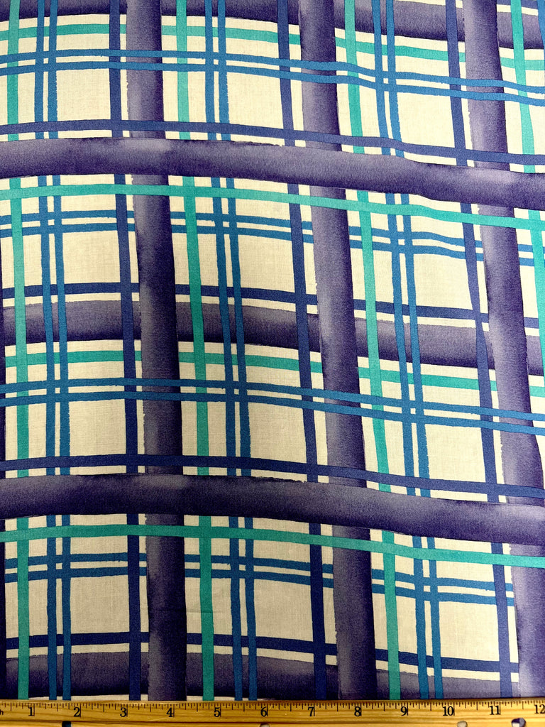 Color: off white background, turquoise, violet, navy blue, cobalt blue